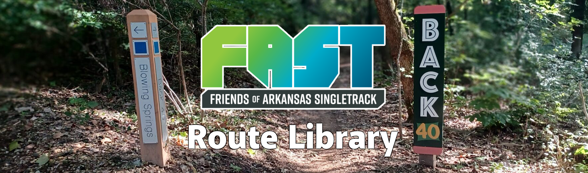Welcome to FAST’s curated library of routes leaving from popular trailheads in Benton County, Arkansas. You’ll find routes of varying distance and difficulty level, offering a wide range for riders of all experience levels.